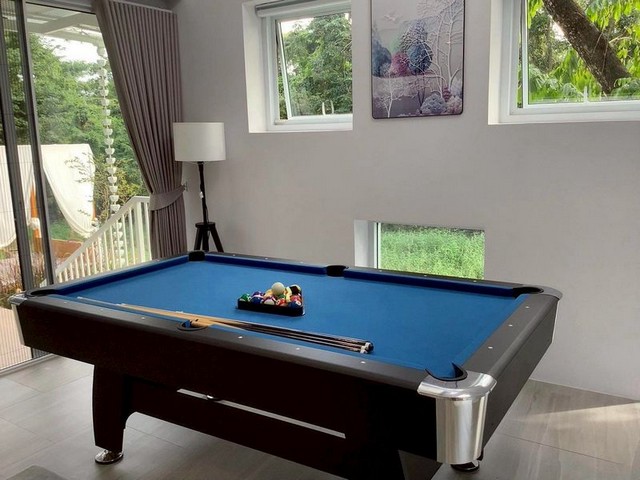 ห้องนั่งเล่นกว้างขวางพร้อมโต๊ะพูล