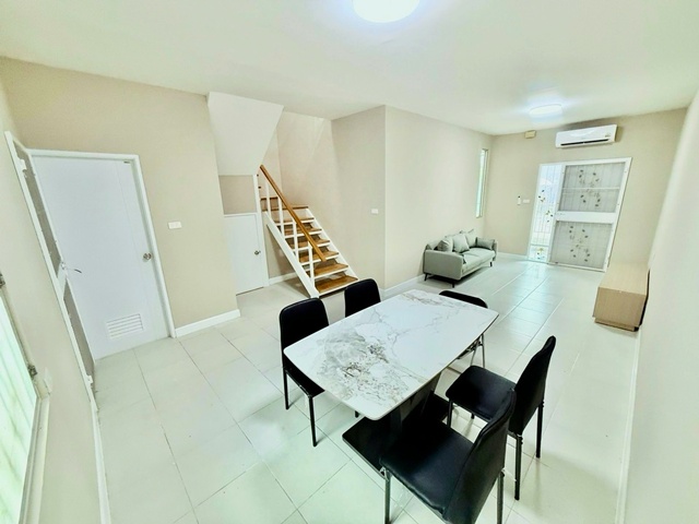 Townhouse for sale or rent 2 stories 3 bed 2 bath 900 m. from Kasetsart University and The Jas Wanghin Land area 25 sq.wa. usable area 200 sq.m. New home Rental 19,499 THB per month Sale price 3.55 million THB Located in Ladprao quiet private suitable for residence or home office with easy access to Kaset Nawamin and Ramintra roads