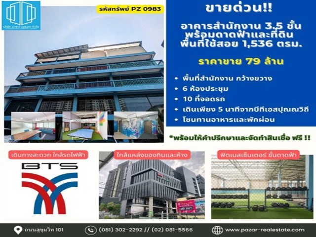 PZ983 : ขายขาดทุน อาคารสำนักงาน 3.5 ชั้น พร้อม ยิมดาดฟ้า
