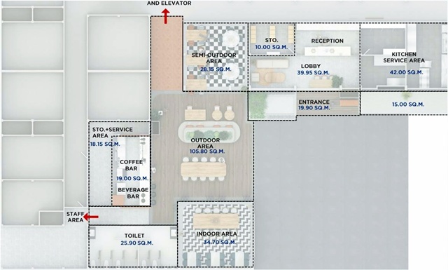 กลุ่มลูกค้า: แขกรอเช็คอิน / เช็คเอาท์ สามารถนั่งดื่มและทานอาหารได้- การจัดพื้นที่ (ตามผัง)
