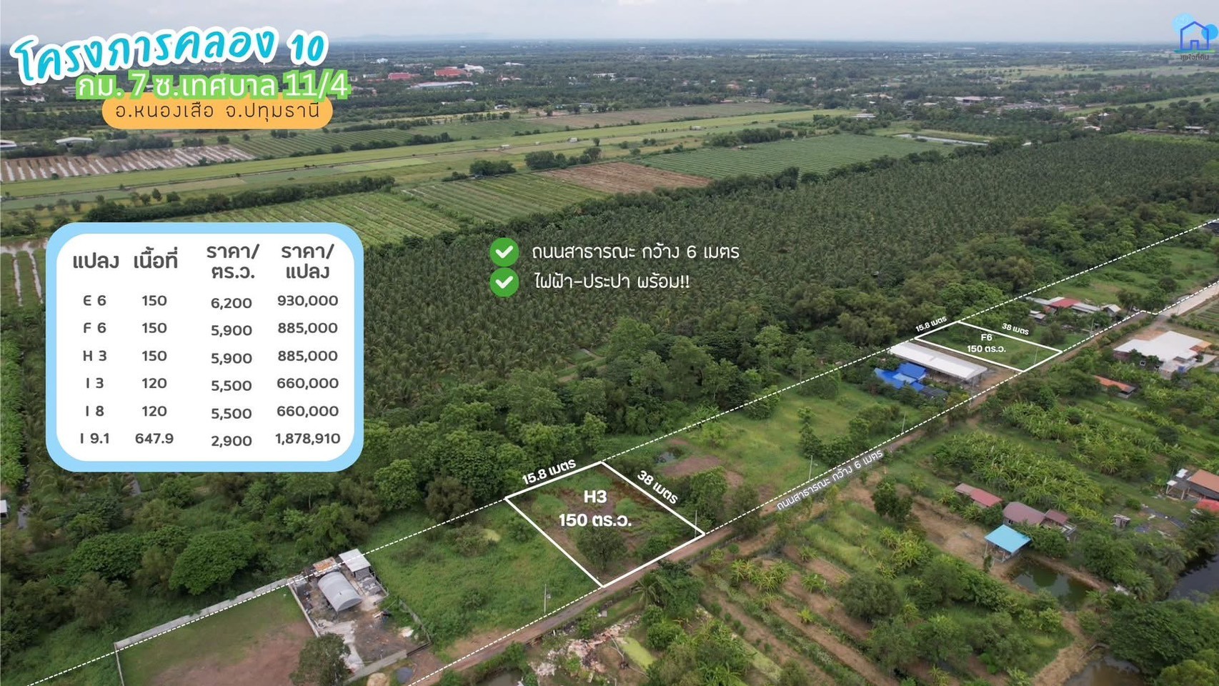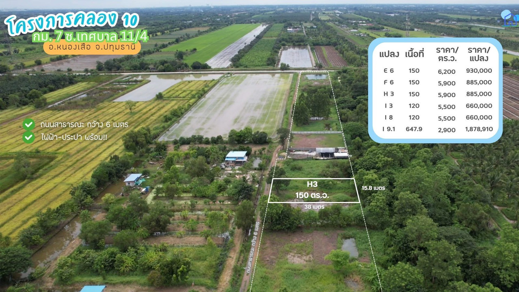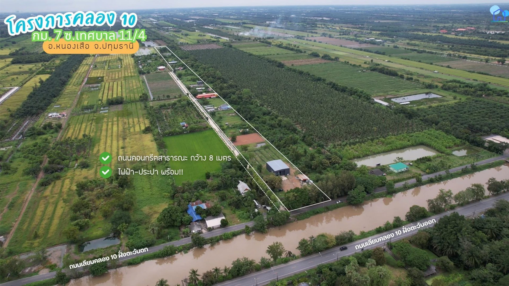 ขายที่ดินคลอง 10 กม.7 เนื้อที่เริ่มต้นแปลงละ 120 ตารางวา อ.หนองเสือ จ.ปทุมธานี