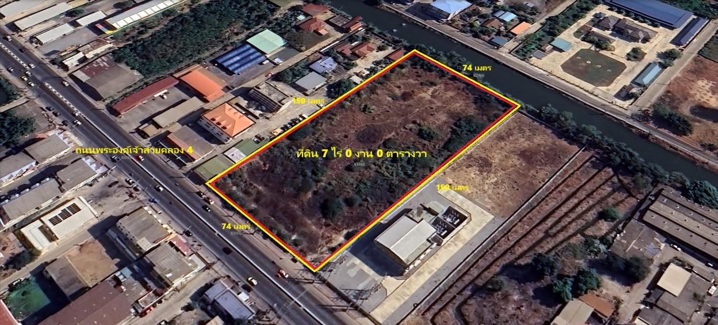 ขายที่ดินลำลูกกา คลอง 4 เนื้อที่ 7 ไร่ 80 ตารางวา ที่ดินถมแล้ว