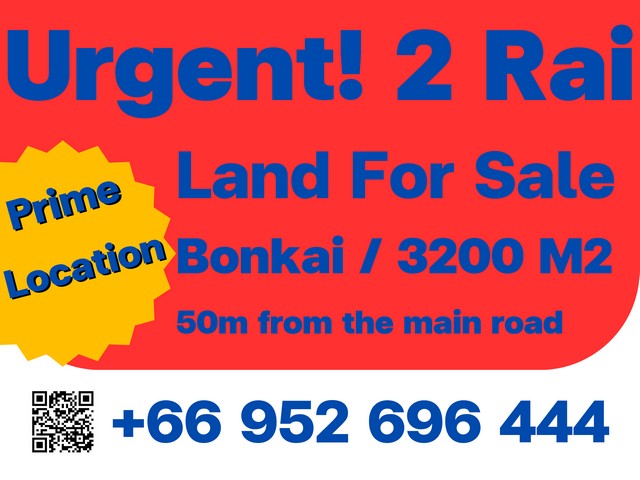 ไอดีไลน์ : nina-miscFOR SALE: 2 Rai (3200 m2) Flat land Prime location ' Bonkai Road '
