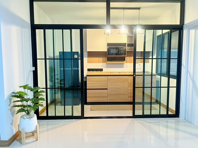 ฟังก์ชัน 3 ห้องนอน 2 ห้องน้ำ จอดรถ 2 คัน มีครัวบิลท์อินภายในบ้านพร้อมบานอลูมิเนียมกันกลิ่น และครัวไทยโซนต่อเติมหลังบ้านพร้อมบานสไลด์ระบายอากาศ