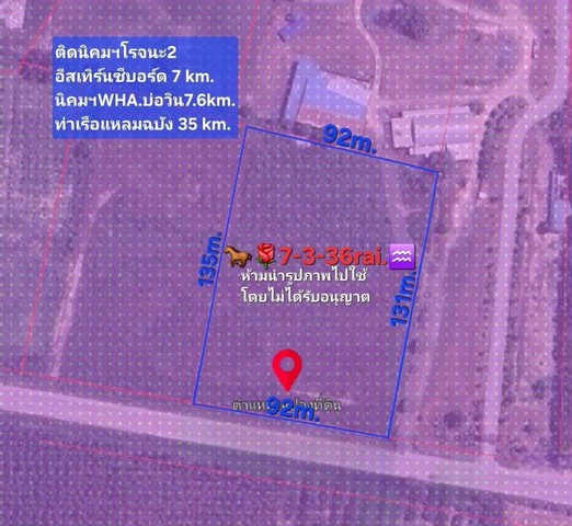 ขายที่ดินศรีราชาชลบุรี ขายที่ดินเนื้อที่ 7-3-36 ไร่ ติดนิคมโรจนะ ผังม่วงลาย นิคมฯอีสเทิร์นซีบอร์ด 7 km. เหมาะทำโรงงานโกดังหรือพัฒนาอื่นๆ
