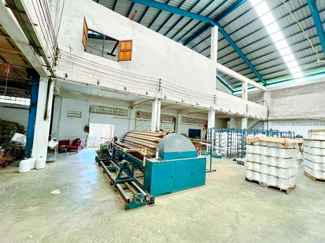 ด้านหลังเป็นตัวโรงงาน 2 ชั้น พื้นที่กว้าง พร้อมลิฟท์ยกของฮิตาชิ รองรับงานอุตสาหกรรมเต็มรูปแบบ