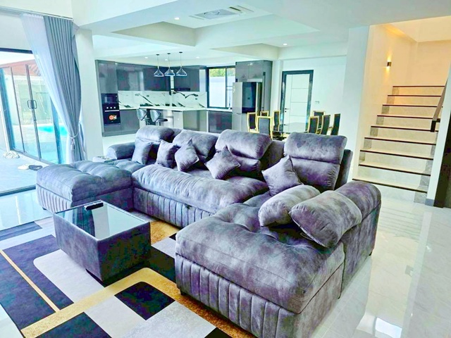 from Nong Prue Market land size 130 sq.wa.private pool Villa 5 bed Phra Praphanimit 5-11 Luxury house with 6 bath 700 m. usable area 450 sq.m. rent 149,998 B-M. brand new fully furnished house suitable for residence holiday home or rental business near Pattaya Dolphinarium 1.7 km. convenient access to Sukhumvit Road connecting Pattaya Central Pattaya South and tourist attractions