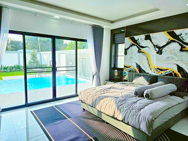 ถ.สุขุมวิท ชลบุรี-พัทยา ต.หนองปรือ อ.บางละมุง จ.ชลบุรีบ้านเดี่ยวหรู ใหม่เอี่ยม ไม่เคยปล่อยเช่า ดีไซน์ทันสมัย พร้อมสระว่ายน้ำส่วนตัว บรรยากาศเงียบสงบและเป็นส่วนตัว