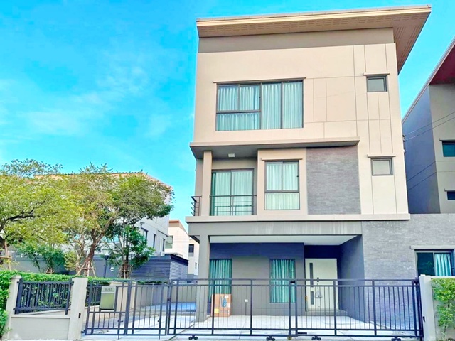 Fashion Island 1.8km. MRT Ramintra83 900m. Khubon 3-story house 4bed 4bath near usable area 31sq.wa. 370sq.m. rent 64,999 B-M corner house next to garden luxury villa style fully furnished suitable for living prime location in Ramintra tranquil and private atmosphere connected to Chalong Ratch Expressway and Kanchanaphisek Expressway
