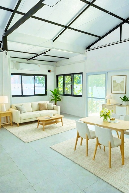 ภายในอาคารมี 2 ห้องนอน 2 ห้องน้ำ พร้อมเฟอร์นิเจอร์ เตียง และที่นอน เครื่องปรับอากาศครบครัน สามารถเข้าใช้งานได้ทันที