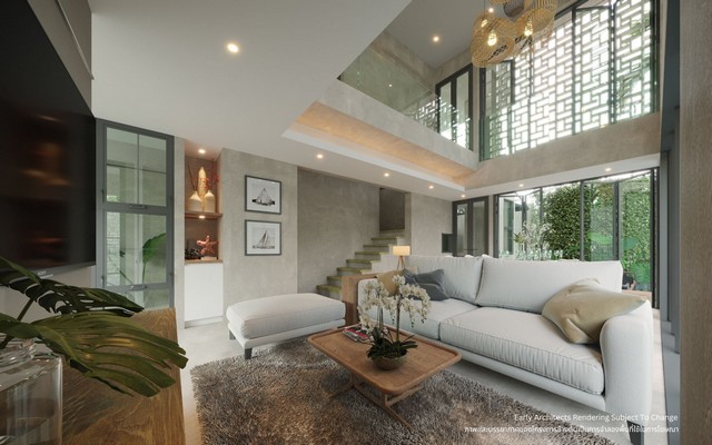 - โถงห้องนั่งเล่นเพดานสูง