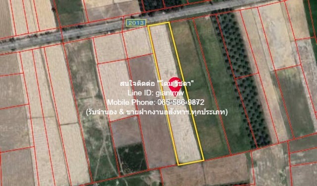 รายละเอียดทรัพย์ที่ขาย: ที่ดินติดถนนทางหลวงหมายเลข 2013 เนื้อที่ 7-2-10 ไร่ (3,010 ตร.ว.)