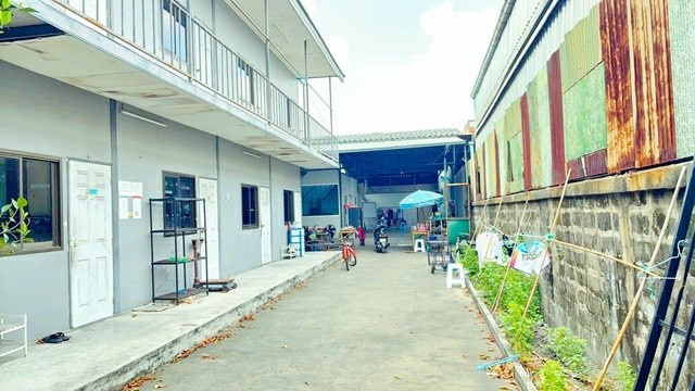 Almost1Rai 380 sq.wa. Warehouse 1500 sq.m.Bangpakok 9 Hospital 700 m.Suksawat 8-18 Rental space available including a 2 story building 16 bed 16 bath price 53,998 B-M. ideal for cafe co working space logistics center or training facility surrounded by community conveniently located 1.9 km. from Indy Market Daokhanong with easy access to Rama 2 and Suksawat roads