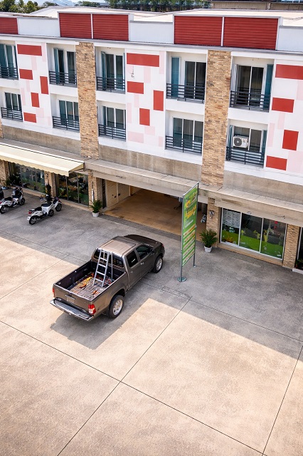 Amata City Industrial Estate 900 m. 25% off from 25,000 baht. Phanthong Hospital 600meters. 3.5 story commercial building For rent 19,998 B-M. in Phan Thong Chonburi 3 bed 3 bath 600 from Phan Thong fresh market strong structure 18 sq.wa. 230 sq.m. located on main road excellent for business or residential use convenient transportation near and large community
