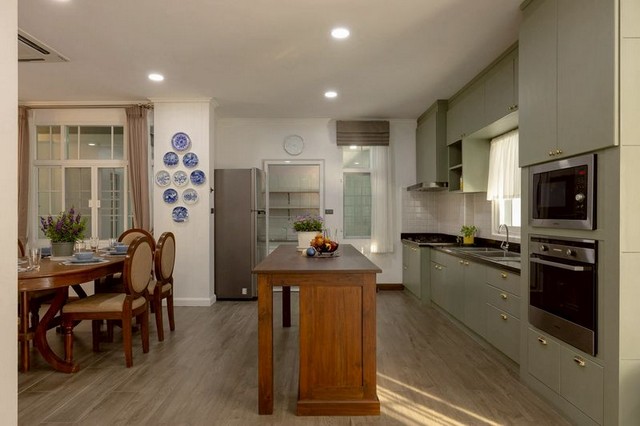 ห้องครัว เคาน์เตอร์บิวท์อิน + เตา + ฮู้ด + ซิ้งค์ เตาอบ ไมโครเวฟ