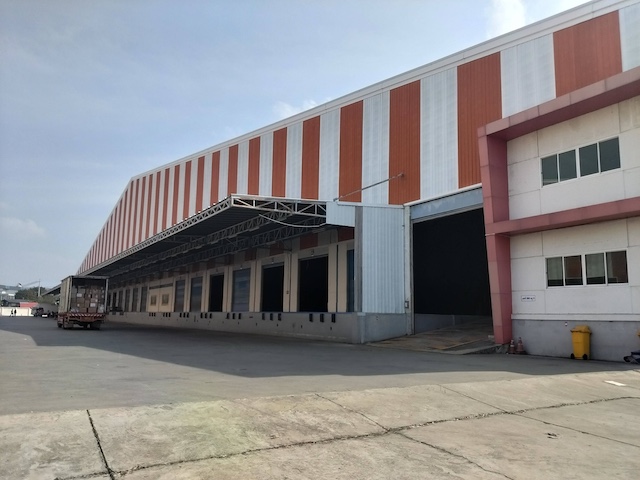 Large logistics warehouse located in the purple industrial zone near Bangna Trad Road and Thepharak Road in Bang Phli Samut Prakan. The property is suitable for logistics companies distribution centers storage facilities and import export businesses.The warehouse offers multiple size options with high ceiling and strong floor load capacity suitable for industrial storage and logistics operations.