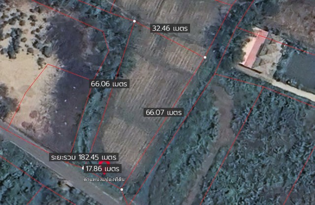 ขนาดที่ดิน: ความกว้างประมาณ 18 เมตร (ติดถนน) และด้านลึก (ยาว) 65 เมตร
