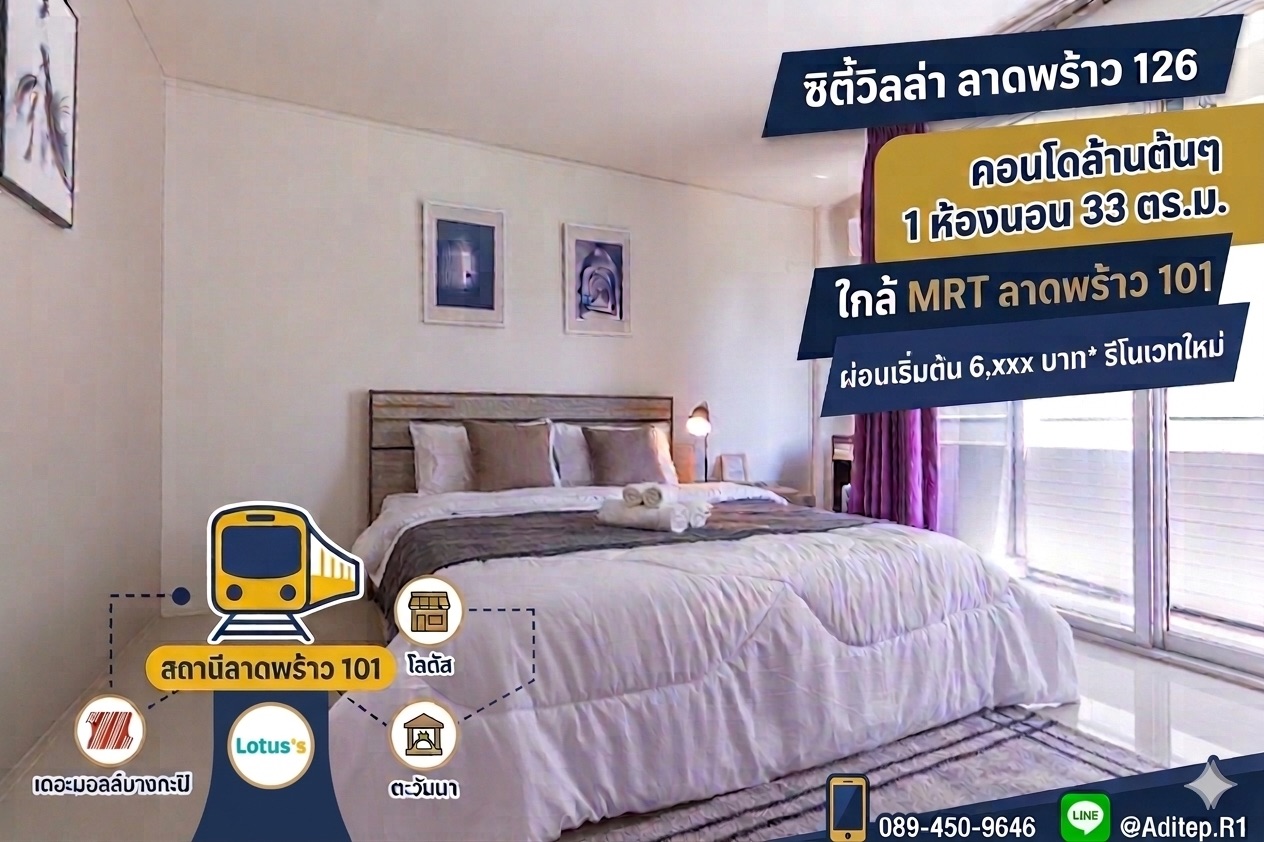 Quote from อดิเทพ ภระมรทัต on 29/03/2026, 2:08 am`ขายคอนโด City Villa ลาดพร้าว 126 ชั้น 3 ตึก F2 | 33 ตรม. รีโนเวทใหม่ เฟอร์ครบ | ใกล้ MRT ลาดพร้าว 101 | ราคาล้านต้น ผ่อนเริ่ม 6 พันกว่า/เดือน`