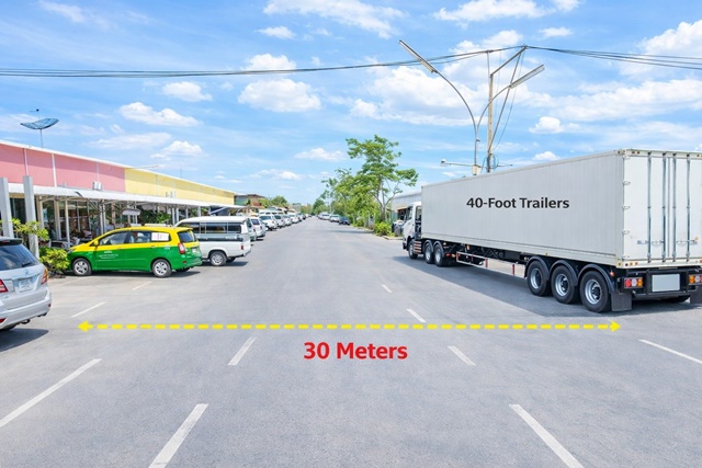 ถนนในโครงการกว้างถึง 30 เมตร รองรับรถขนาดใหญ่ เข้าออกสะดวก จอดรถได้สบาย เหมาะสำหรับธุรกิจที่ต้องการพื้นที่ และการขนส่งคล่องตัว