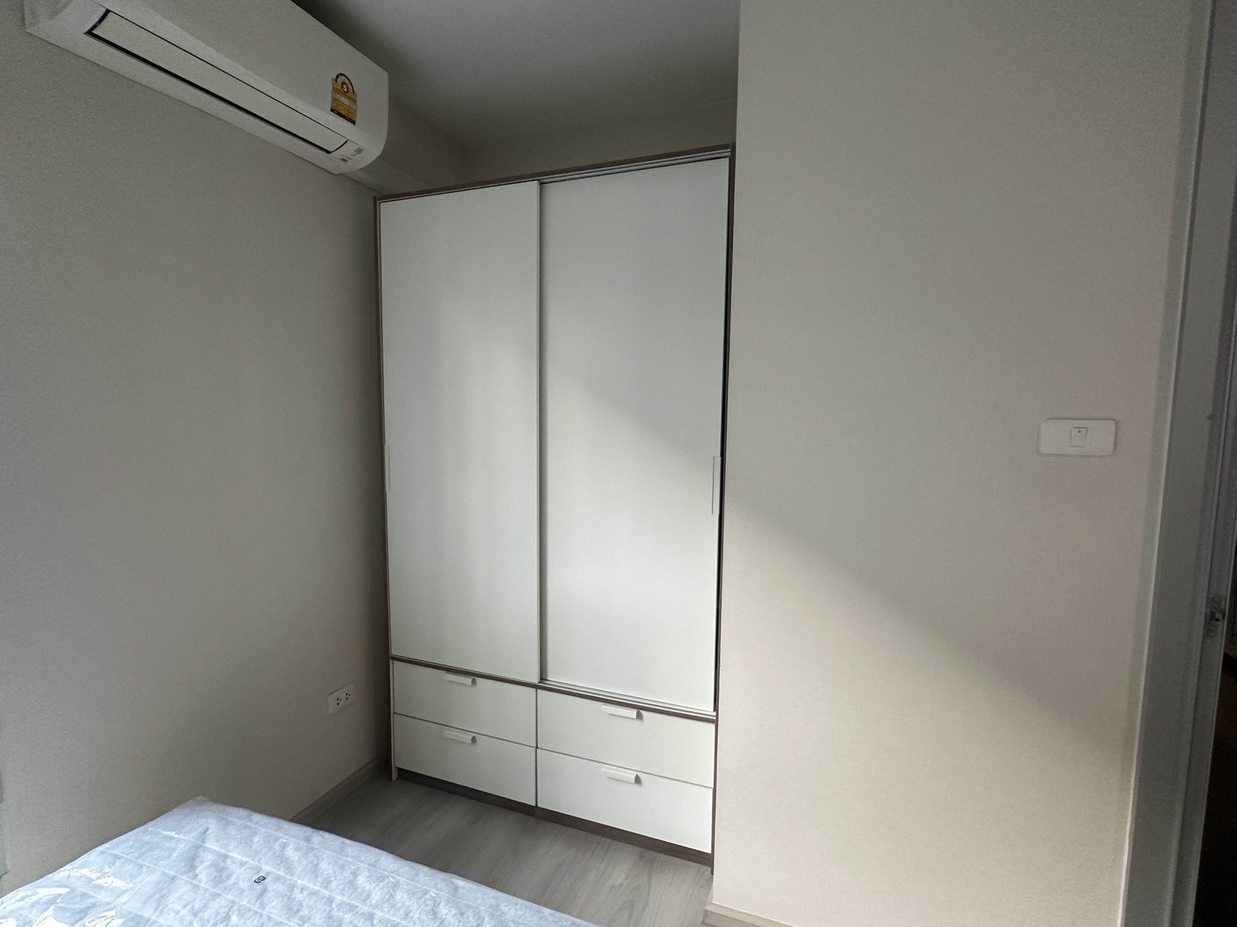 - 1ห้องนอน ก้้นบานเลื่อนกระจก ติดตั้งแอร์ 1ตัว /ตู้เสื้อผ้า3ประตู/เตียงพร้อมฟูก5ฟุต