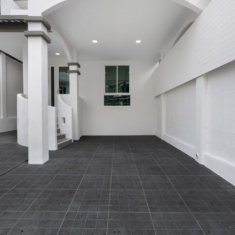 - พื้นโรงจอดรถ ปูด้วยกระเบื้องกันลื่น