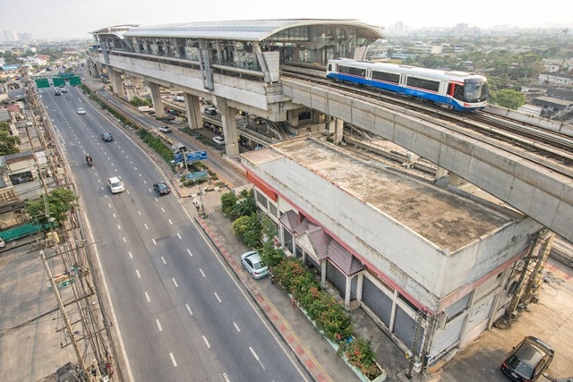 Sukhumvit 83 BTS PakNam Land a 3-story building 5 bed 4 bath near BTS Srinakarin 500 m. and Samut Prakan Viewpoint Tower land size 1 rai or 400 sq.wa. usable area 1000 sq.m. frontage 35 m. depth 46 m. price 189,998 B-M. for sale 199.99 Million bath on Sukhumvit Road suitable for showroom office or retail business near Robinson Samut Prakan 1.5 km. schools hospitals convenient transportation