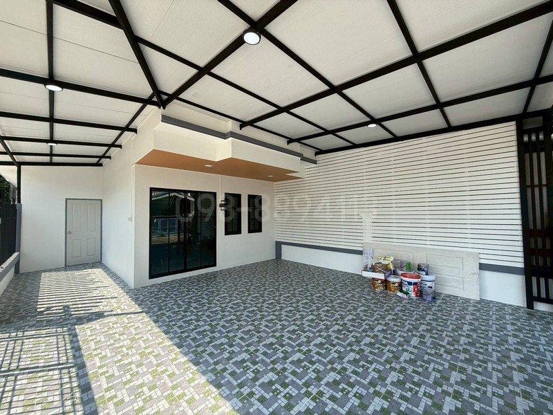 - ปูกระเบื้องโรงจอดรถเต็มพื้นที่