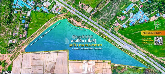 ขายที่ดิน 59 ไร่ แปลงใหญ่ ติดถนนเลี่ยงเมืองพิษณุโลก 126 ต่อรองได้ ขายต่ำกว่าราคาตลาด ถูกสุด