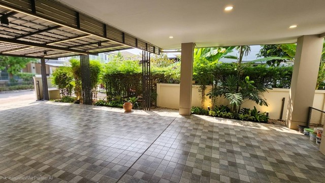 ภายในบ้านมีการต่อเติมโรงรถเต็มพื้นที่ ทำให้จอดรถได้มากถึง 6 คัน
