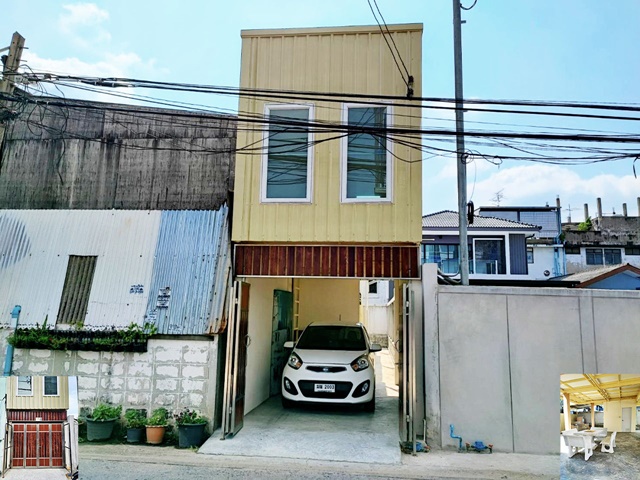 Chan 27-43 Central Rama 3 1.5km. House for rent 1 floor raised floor Rama 3 54sq.wa. 220sq.m. 12,499B-M has a balcony airy 1bed 2bath 1parking 2A/C good location many entrances and exits. Via BTS Surasak.
