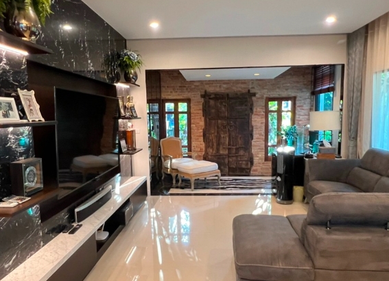 ถ.พัฒนาการ สวนหลวง ประเวศ กทมพื้นที่ใช้สอย 299 ตร.ม. ประกอบด้วย 4 ห้องนอน 5 ห้องน้ำ ห้องรับแขกชั้นล่าง ห้องพักผ่อนชั้นบน ห้องรับประทานอาหาร ส่วนเตรียมอาหาร ห้องครัวไทย ห้องแม่บ้านพร้อมห้องน้ำ ที่จอดรถในร่ม 3 คัน