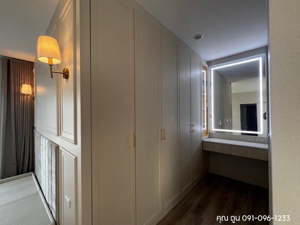 5.บิ้วอินหัวเตียง และ ตู้เสื้อผ้าไม้จริงทำสีขาว สไตล์คลาสสิค