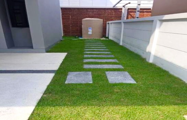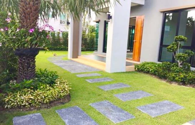 -จัดสวนเป็นระเบียบมีต้นไม้รอบบ้านและสนามหญ้ารอบบ้าน