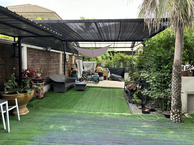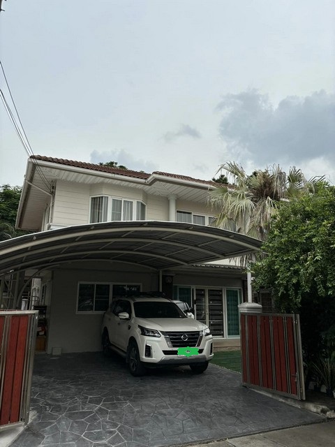 มีสวนหน้าบ้านสามารถทำสระว่ายน้ำได้บ้านเดี่ยวสไตล์รีสอร์ท วิวหลังบ้านติดสนามกีฬารามอินทรา ทำเทอเรสไม้ไว้นั่งเล่นรับอากาศดีๆ