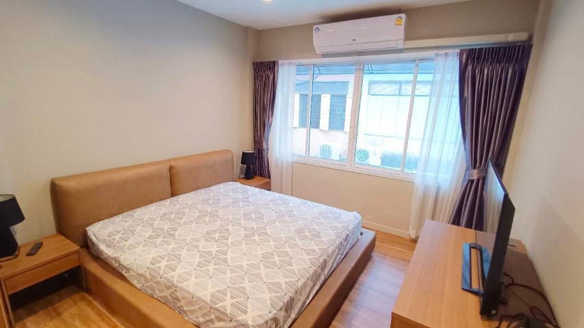- ห้องนอนใหญ่ มีเตียงนอน King size มีตู้เสื้อผ้า และแอร์ 1 เครื่อง ติดผ้าม่านอย่างดี