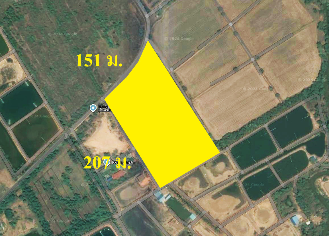 - หน้ากว้าง ติดถนน 151 เมตร ลึก 207 เมตร