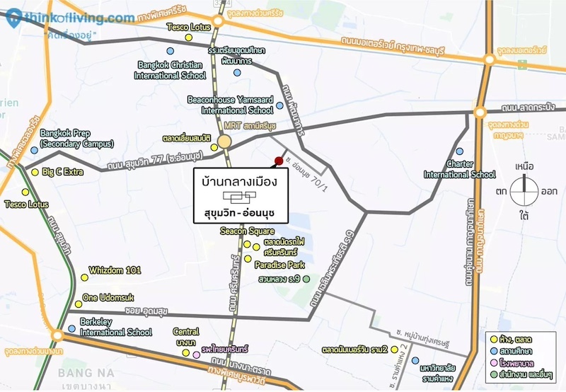 ทำเลสะดวก: ห่างจากสถานีรถไฟฟ้าศรีนุช (สายสีเหลือง) เพียง 5 นาที และสถานีอ่อนนุช (สายสีเขียว) 15 นาที