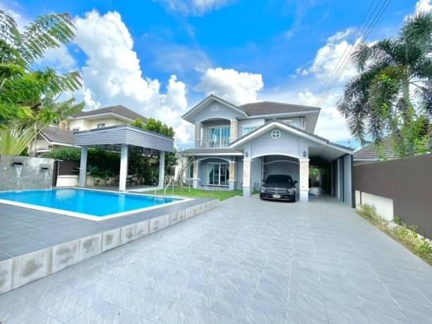 #บ้านหันหน้าทิศเหนือ ไม่ร้อน บ้านร่มรื่น พร้อมสระว่ายน้ำ ฟังเสียงน้ำตกแสนผ่อนคลาย และมีศาลานั่งเล่นในมุมสวนหน้าบ้านจุดเด่น