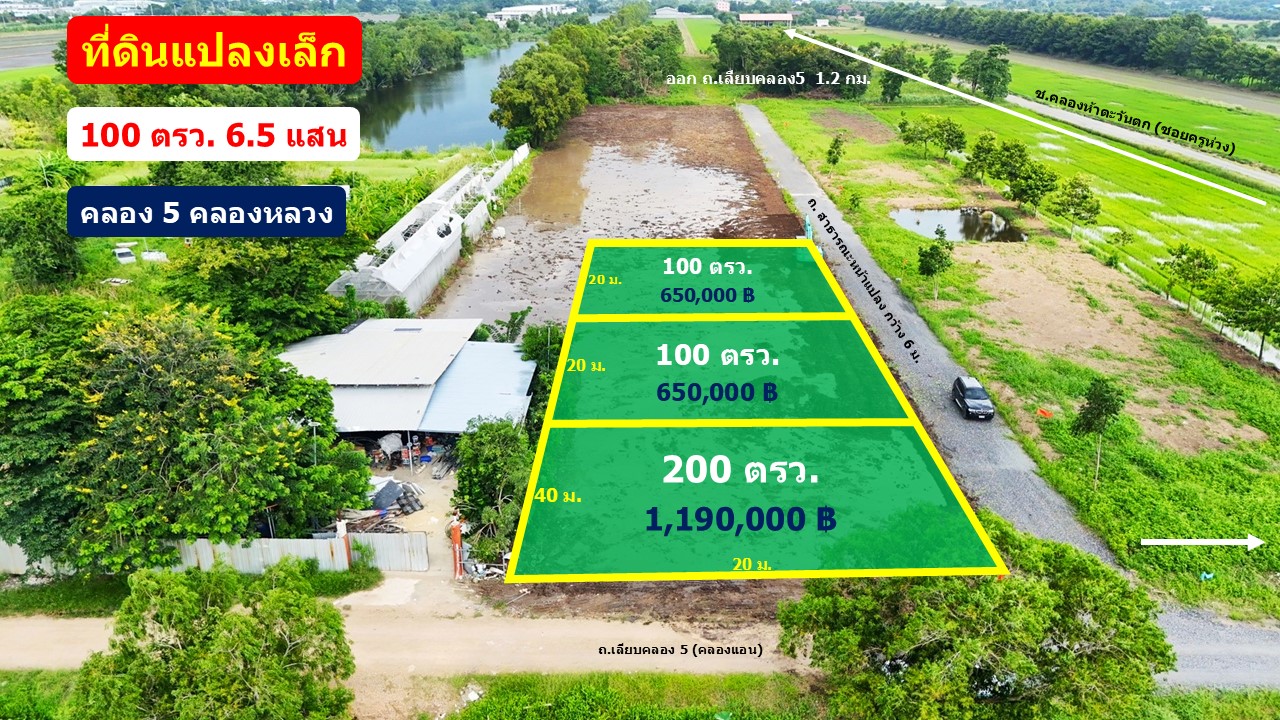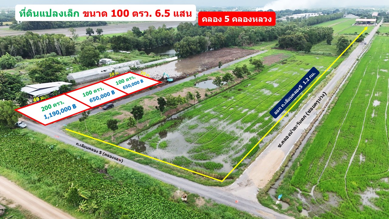 ที่ดินคลอง 5 คลองหลวง ปทุมธานี 100 ตรว. เพียง 6.5 แสน
