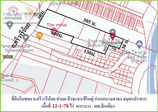 ขายที่ดินถนนวัดศรีวารีน้อย เนื้อที่ 12-1-78 ไร่ หนองปรือ บางพลี สมุทรปราการ 10540