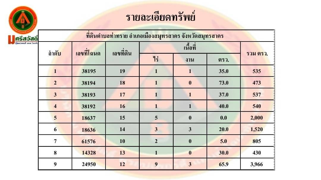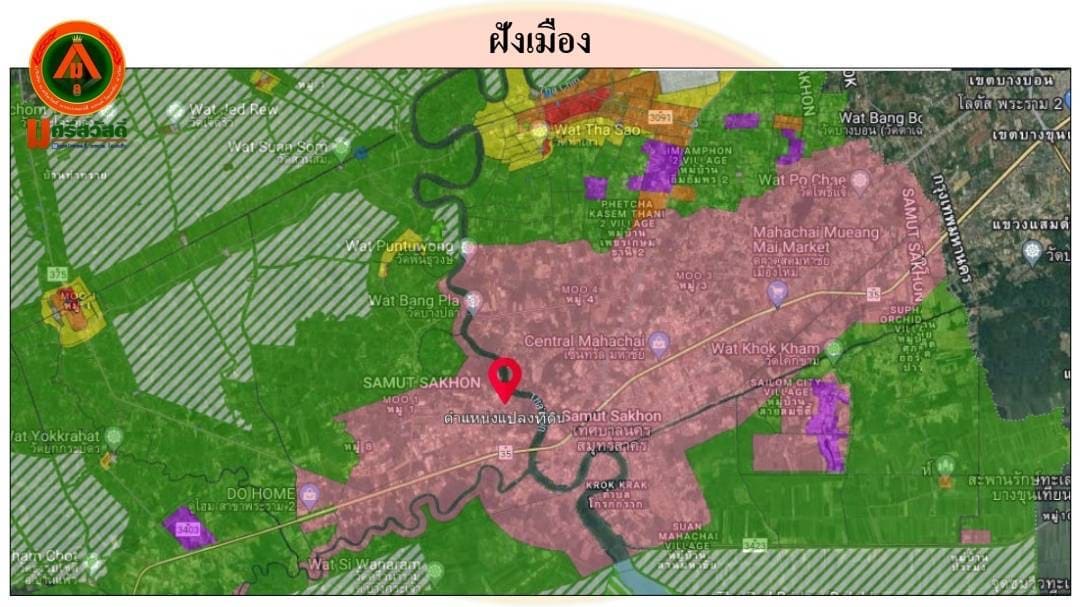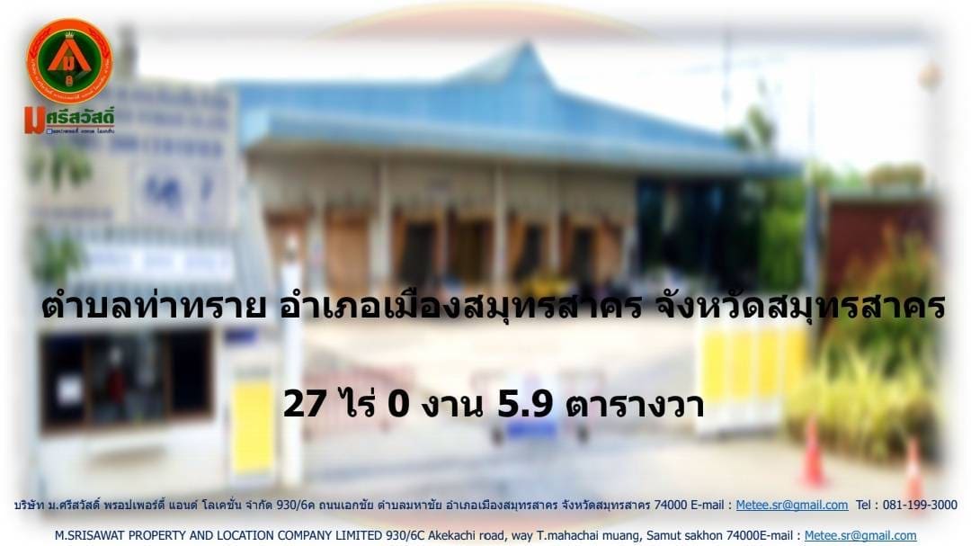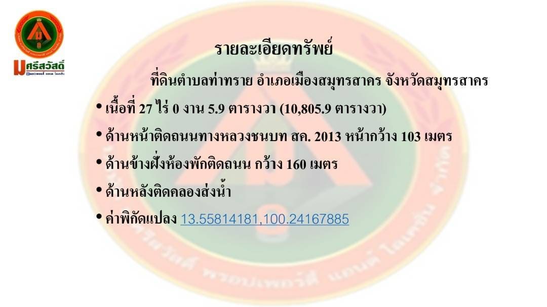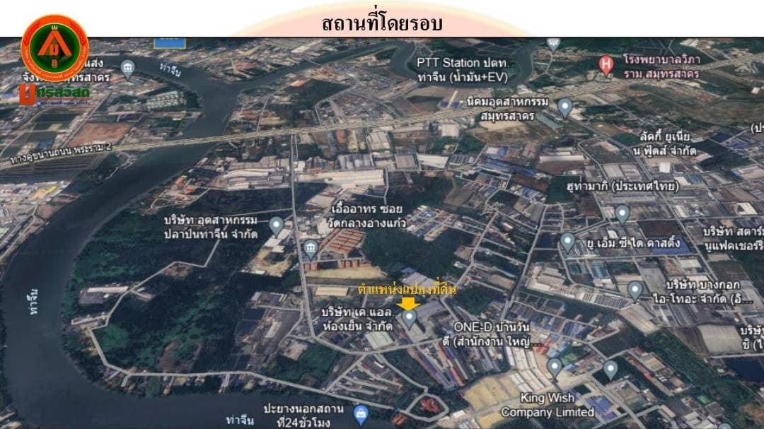 ????️ที่ดิน : ตำบลท่าทราย อำเภอเมืองสมุทรสาคร จังหวัดสมุทรสาคร ด้านหน้าติดถนนทางหลวงชนบท ด้านหลังติดคลองส่งน้ำ