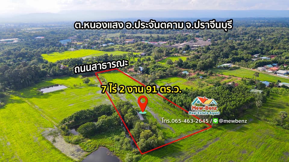 ที่ดินดี เดินทางเข้าออกสะดวก มีถนนคอนกรีต ขนาด 7 ไร่ 2 งาน 97 ตรว ต.หนองแสง อ.ประจันตคาม จ.ปราจีน