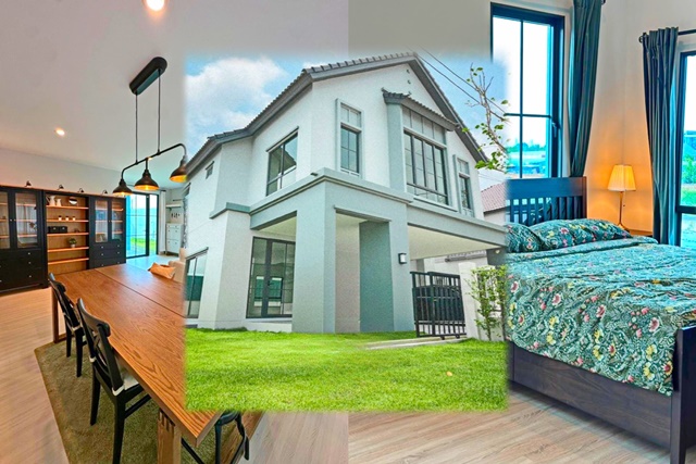 Pracha Uthit Market 90 3km. Sarasas WitaedSuksa School 2 km. The cheapest in the world CJ Pracha Samakkhi 1.3km.Luxury mansion solar cells for sale-rent 2-storey house 226 sq.m.60 sq.wa.3bed 3bath 46,998 b-mPracha Uthit-Wat Khu Sang Rd.Pracha Samakkhi Alley convenient transportation