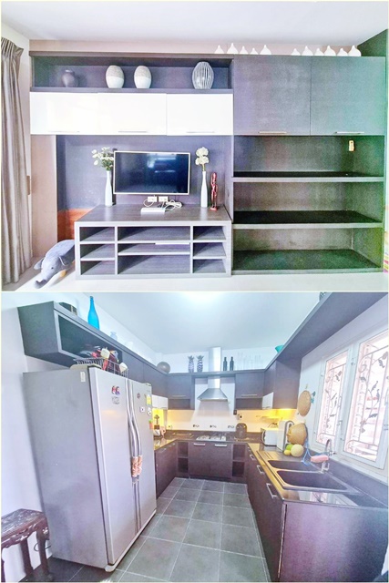 fully furnished.MRT HuaMak Thonglor-Ekkamai 2-story detached house for rent Seacon Paradise 3bed 3bath 5a/c 59,999 B-M ready to move in Built-in throughout the house microwave washing machine 1 water heater wardrobe display cabinet.
