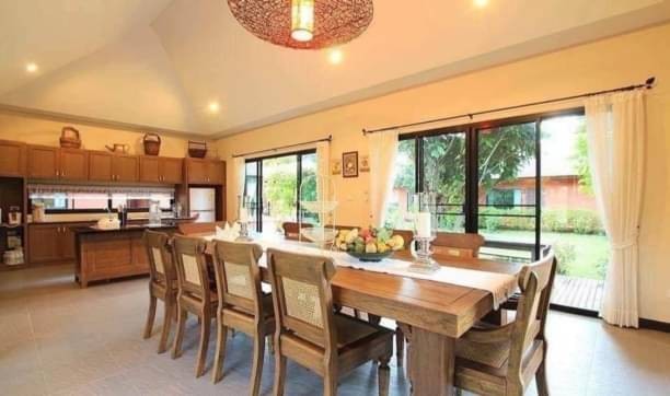 ห้องครัวใหญ่ : 1 ห้อง เชื่อมต่อกับโซนนั่งเล่น พร้อมอุปกรณ์ไฟฟ้า เช่น ตู้เย็น ซิงค์ล้างจาน เคาน์เตอร์มินิบาร์ และชุดโต๊ะรับประทานอาหารสำหรับ10ท่าน แอร์1ตัว