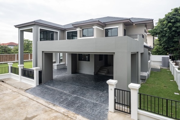 - จอดรถ 2 คัน พร้อมหลังคาโรงรถ และจอด 2 คัน ภายนอกบ้าน