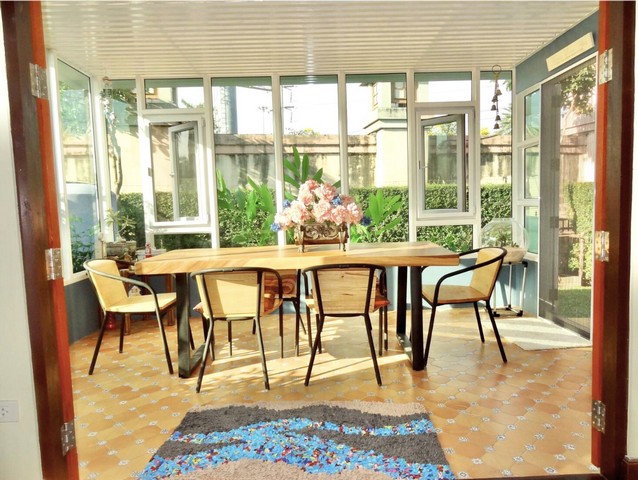 - ห้อง Sunroom พร้อมหน้าต่างและกระจกใส