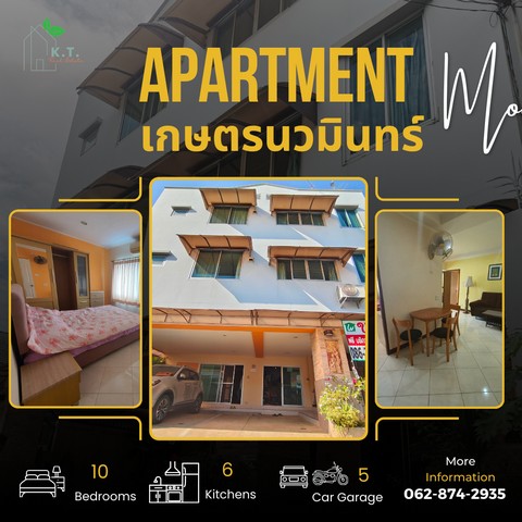 ขายด่วน อพาร์ทเม้นต์ 3 ชั้น เกษตรนวมินทร์ ราคาจับต้องได้ ทำธุรกิจได้ทันที