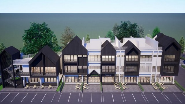 อาคารสร้างใหม่ 3 ชั้นครึ่ง ติดถนนใหญ่ ดีไซน์โดดเด่น สันทราย