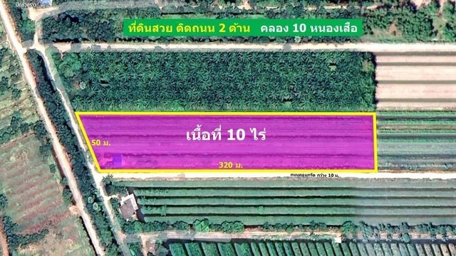 ที่ดินคลอง10 หนองเสือ ติดถนน 2 ด้าน 10 ไร่ ไร่ละ 680,000 บาท